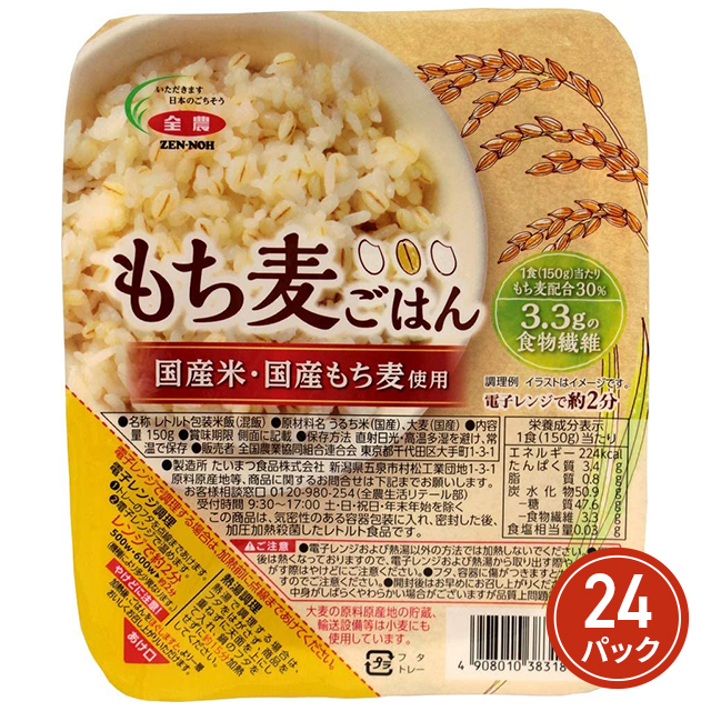 全農国産米・国産もち麦使用 もち麦ごはん 24パック (150g×3食入り×8パック) パールライス パックご飯
