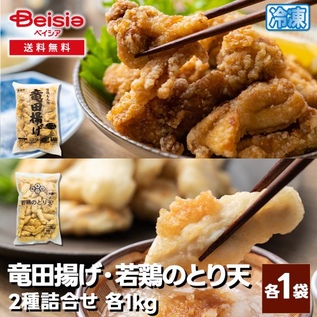 双日食料 若鶏のとり天と竜田揚げの2種詰合せ 計2kg(各1kg) | とり天 竜田揚げ 冷凍 大容量 鶏肉 セット お弁当 惣菜 業務用 和食 簡単調理 時短 夕食 詰め合わせ