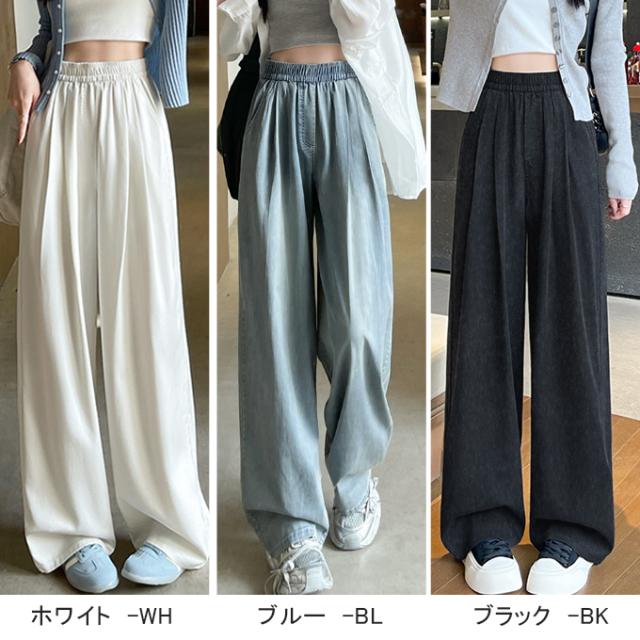 秋新作 レディースファッション 15%OFF、2400円、ひんやり 接触冷感 ワイドデニム UVカット 涼感ワイドパンツ デニムパンツ ウエストゴム レディース ハイウエスト ジーンズ きれいめ