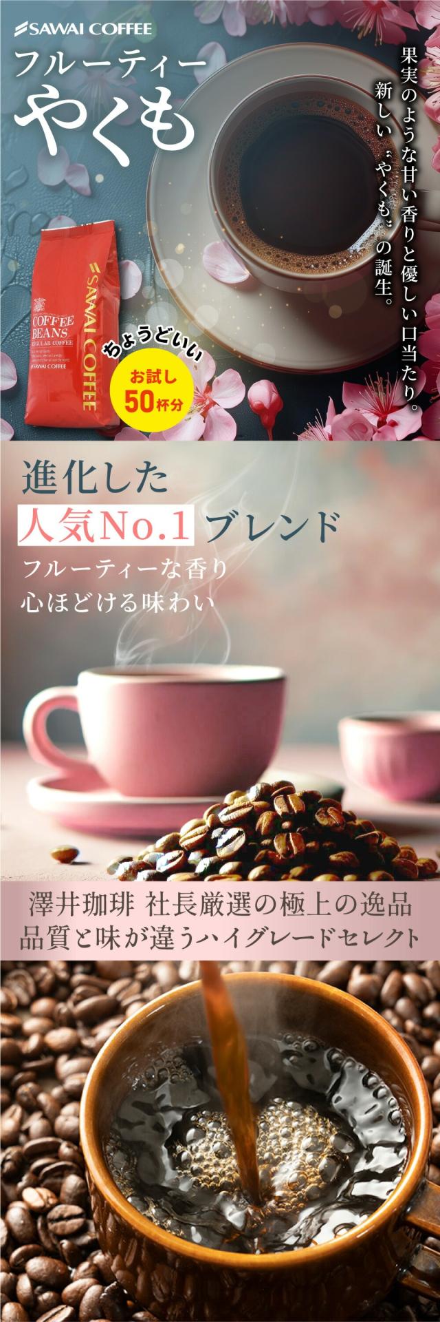 コーヒー豆 珈琲豆 フルーティーやくも 500g 1袋 中挽き/豆のまま お試し 焙煎したて 単品 50杯分 澤井珈琲
