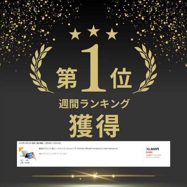 新品タブレット型ノートパソコン11.6インチ VETESA Office付 Windows11 Intel Pentium N3700 メモリ8GB SSD256GB/最大512GB増設可 初期設定済
