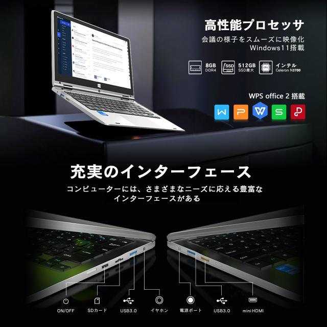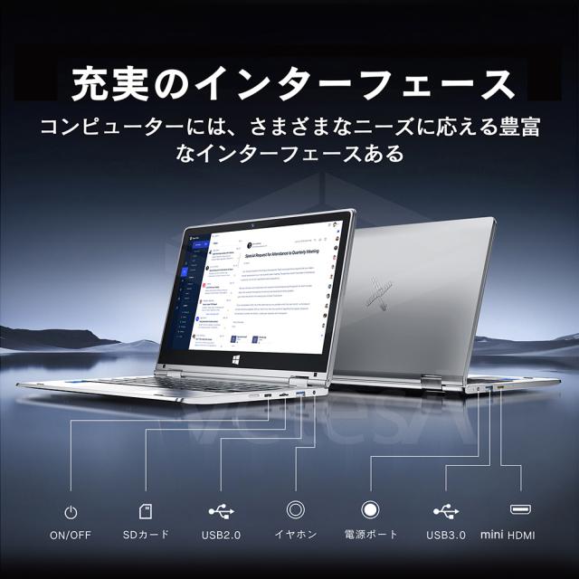 | 商品特徴 | 360度画面回転により、さまざまなフォルムでの活用が可能なフォルダー型コンバーチブル。11.6型 HD(1366*768)液晶搭載薄型, タッチパネル対応 CPU:インテル Pentium N3700 1.6-2.4GHz 4コア メモリ:8GB 高速SSD 256GB/512GB増設可。 日常使い、プレイベートやビジネスシーンにもピッタリな軽量薄型タブレット型ノートパソコン。高級感のある重厚なメタリックボディ OS: Windows11搭載、WPS搭載(Word, Excel, PowerPoint, Outlook, OneNote) Webカメラ(マイク内蔵)、WIFI、Bluetooth、miniHDMI、USB3.0×1、USB2.0×1、SDカードリーダー、3.5mmオーディオポート、ACアダプター付属 【長時間連続使用】大容量4000mAhバッテリー内蔵で、長時間稼働を実現 本パソコンはご購入後一年間保証いたします。 英語表記キーボードになります。(かな表記がございません) |