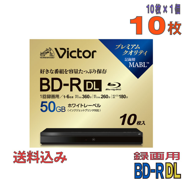 【ブルーレイディスク】 Victor(ビクター) BD-R DL データ&デジタルハイビジョン録画用 50GB 1-6倍速 ワイドホワイトレーベル 10枚スリムケース (VBR260RP10J6) 【送料込み※沖縄・離島・一部地域を除く】 【KSW】