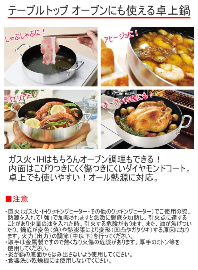 テーブルトップ オーブンにも使える卓上鍋 18cm HB-3962 なべ 鍋 両手鍋 卓上鍋 オール熱源対応 内面ダイヤモンドコート オーブン料理 しゃぶしゃぶ アヒージョ 調理器具 キッチン用品 パール金属