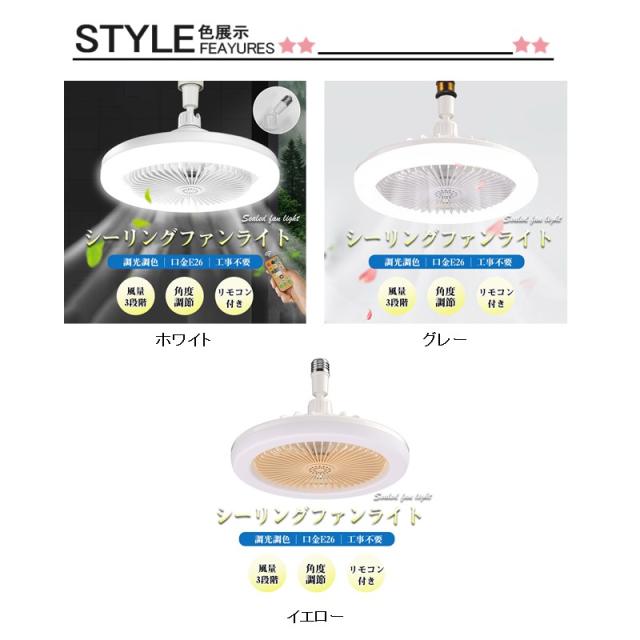シーリングファンライト 調色調光 LED ファン付き照明 リモコン付き 口金E26対応 風量3段階 角度調節 扇風機 大風量 静音