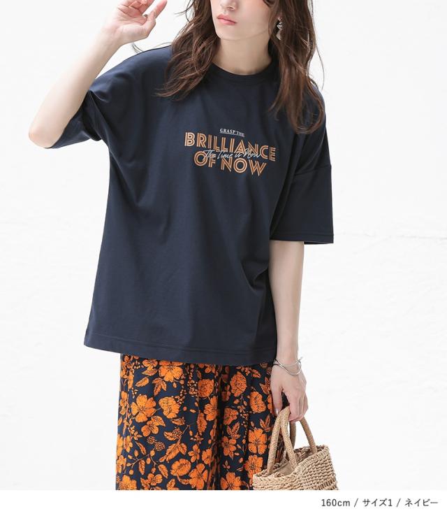 『接触冷感ロゴプリントT』※メール便可※【5】[Tシャツ レディース トップス カットソー 半袖 接触冷感 ロゴ プリント クルーネック 配色 ひんやり 涼感 涼しい お尻が隠れる 夏]