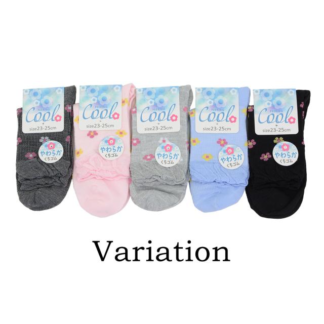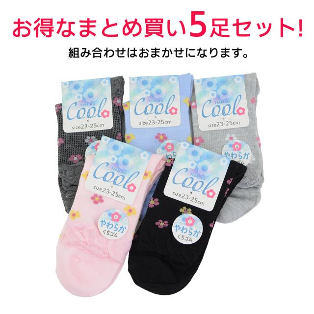やわらか口ゴム 春夏 花柄 クール ソックス 5足セット 女性 23-25cm クルー丈 かわいい レディース 口ゴムゆったり【メール便送料無料】履き口ふんわり 高齢者 しめつけ解消 靴下 春夏