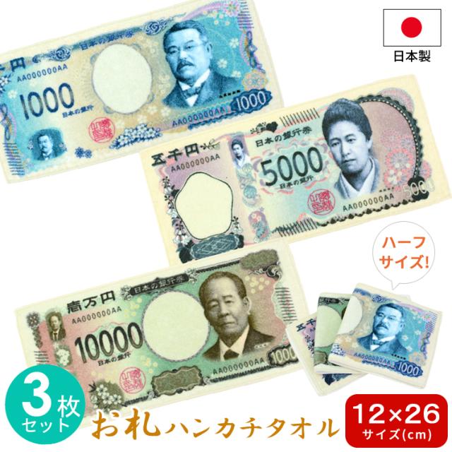 紙幣ハンカチ お札ハンカチ 12×25 3枚セット ハンカチ タオル 10000円 渋沢栄一 5000円 津田梅子 1000円 北里柴三郎 壱万円 日本 タオル 今治 紙幣 お札 観光土産 お金 千円 五千円 一万円 紙幣多織瑠 日本字 土産 漢字 日本製 みやげタオル 【メール便送料無料】