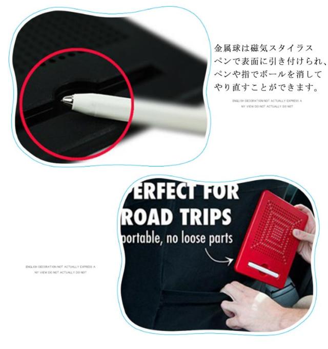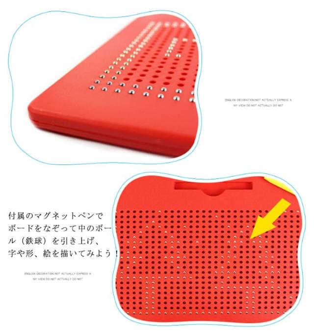 | 子どもの知育玩具男の子と女の子を問わず、だれでも簡単におえがきを楽しめる子供のおもちゃ。子供たちは想像力を使って絵、形、文字、数字を描くことができます! プラスティック製のボードに、磁石内蔵ペンで遊びます。 付属のマグネットペンでボードをなぞって中のボール(鉄球)を引き上げ、字や形、絵を描いてみよう! 金属球は磁気スタイラスペンで表面に引き付けられ、ペンや指でボールを消してやり直すことができます。 大人も子供も楽しく遊べる知育玩具のマグネットタブレットです。 周りやお洋服を汚さずに遊べるので、安心です◎ 何度でも描くことができて楽しいです♪ お誕生日プレゼントやクリスマスプレゼント、入学祝い・卒業祝いにも最適です。 | |