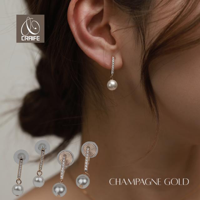 痛くない イヤリング ピアス フープピアス 金属アレルギー対応 18Kコーティング ニッケルフリー イヤーカフ イヤカフ ジルコニア 大人 可愛い ジュエリー シャンパンゴールド 両耳用 送料無料 プチプライス高見え CRAIFE