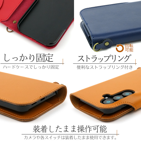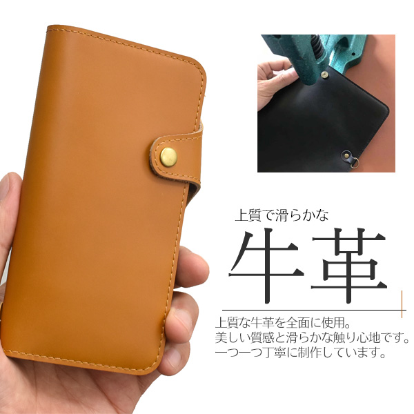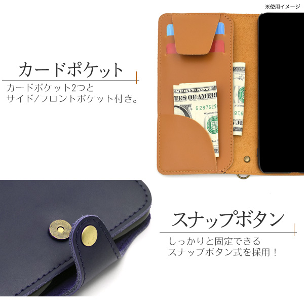 | 上質な牛革を全面に使用した、牛革手帳型ケース。 美しい質感と滑らかな触り心地の牛革を使用しています。 一つ一つ丁寧に制作しています。 実用新案登録済のカード落下防止フラップ付き! 逆さにしてもカード落下の心配がありません。 大切なカード収納時やネックストラップ使用時などに最適です。 内部ケースはハードケースなのでしっかりとスマートフォンを固定できます。 横開きタイプなので、手帳のように使うことができます。 また、内側にはカードポケット2つとフロント/サイドポケットが付いています。 しっかりと固定できるマグネット式スナップボタンを採用しています。 便利なストラップリング付きで、ストラップなどを装着可能です。 | ||||||||||||||