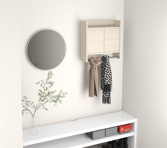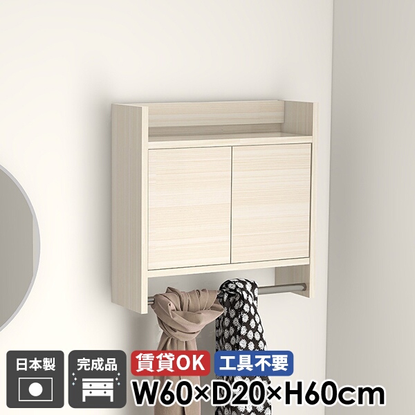 コートハンガー ウォールラック ウォールシェルフ ハンガーラック 壁掛けハンガーラック 洗面所 モダン キャビネット 扉付き 玄関 棚付き 高級感 石膏ボード おしゃれ 日本製 壁掛け ハンガーバー ポールハンガー 完成品 リビング収納 北欧 壁に付ける 賃貸 幅60cm ★