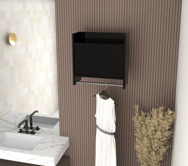 コートハンガー 壁掛けハンガーラック ウォールラック ハンガーラック ウォールシェルフ 洗面所 扉付き キャビネット ブラック 玄関 黒 リビング収納 高級感 ハンガーバー ポールハンガー 完成品 おしゃれ 日本製 北欧 石膏ボード 壁掛け 壁に付ける 賃貸 幅60cm ★