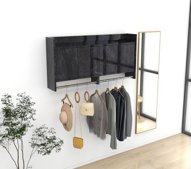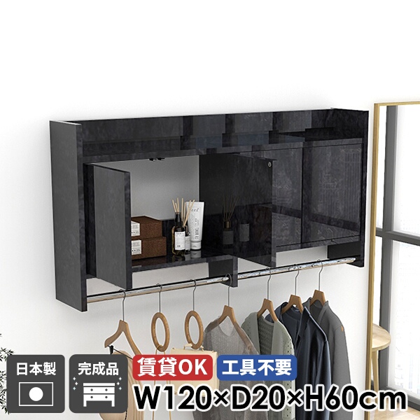 壁掛けハンガーラック ウォールシェルフ コートハンガー ウォールラック ハンガーラック 棚付き 扉付き 石目調 玄関 洗面所 キャビネット 石膏ボード ハンガーバー 北欧 壁掛け おしゃれ 日本製 完成品 ポールハンガー 高級感 壁に付ける リビング収納 賃貸 幅120cm ☆