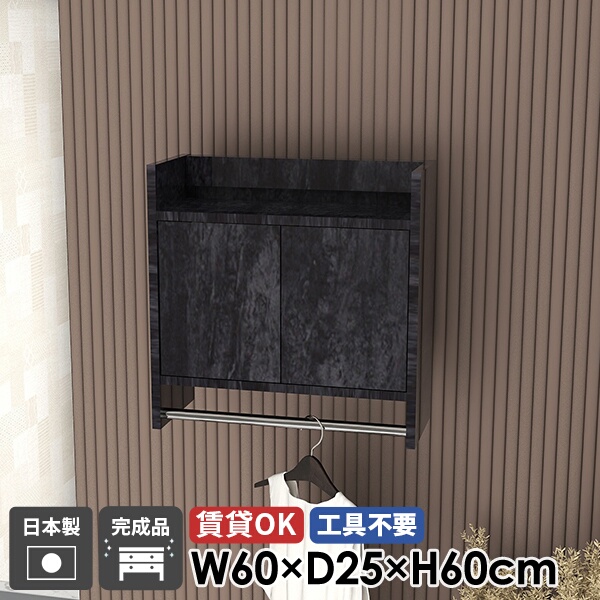 コートハンガー 壁掛けハンガーラック ウォールラック ハンガーラック ウォールシェルフ 洗面所 扉付き キャビネット 石目調 玄関 棚付き リビング収納 高級感 ハンガーバー ポールハンガー 完成品 おしゃれ 日本製 北欧 石膏ボード 壁掛け 壁に付ける 賃貸 幅60cm ★