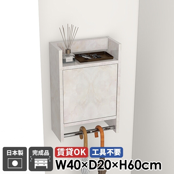 ウォールラック 壁掛けハンガーラック ハンガーラック コートハンガー ウォールシェルフ 大理石柄 玄関 扉付き キャビネット 洗面所 棚付き 北欧 完成品 ハンガーバー ポールハンガー 高級感 リビング収納 壁掛け おしゃれ 日本製 石膏ボード 壁に付ける 賃貸 幅40cm ★