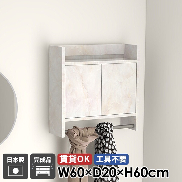 コートハンガー ウォールラック ウォールシェルフ ハンガーラック 壁掛けハンガーラック 洗面所 大理石柄 キャビネット 扉付き 玄関 棚付き 高級感 石膏ボード おしゃれ 日本製 壁掛け ハンガーバー ポールハンガー 完成品 リビング収納 北欧 壁に付ける 賃貸 幅60cm ★