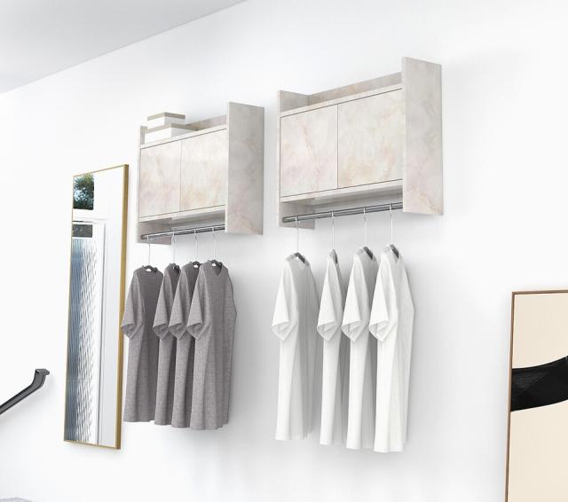 ハンガーラック コートハンガー ウォールラック 壁掛けハンガーラック ウォールシェルフ 棚付き 扉付き 大理石柄 玄関 洗面所 キャビネット 石膏ボード ハンガーバー 北欧 壁掛け おしゃれ 日本製 完成品 ポールハンガー 高級感 壁に付ける リビング収納 賃貸 幅80cm ★