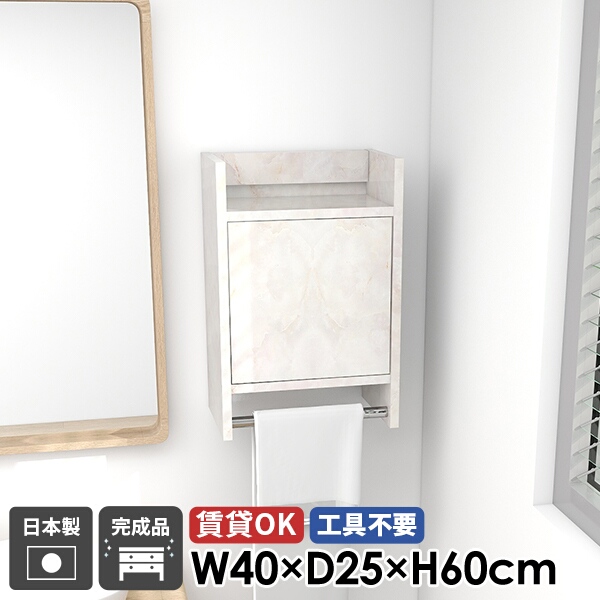 ウォールシェルフ ハンガーラック 壁掛けハンガーラック ウォールラック コートハンガー 扉付き キャビネット 大理石柄 玄関 棚付き 洗面所 ハンガーバー ポールハンガー 石膏ボード リビング収納 高級感 壁掛け 壁に付ける 北欧 完成品 おしゃれ 日本製 賃貸 幅40cm ★