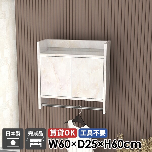 コートハンガー 壁掛けハンガーラック ウォールラック ハンガーラック ウォールシェルフ 洗面所 扉付き キャビネット 大理石柄 玄関 棚付き リビング収納 高級感 ハンガーバー ポールハンガー 完成品 おしゃれ 日本製 北欧 石膏ボード 壁掛け 壁に付ける 賃貸 幅60cm ★