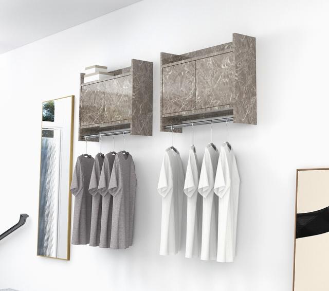ハンガーラック コートハンガー ウォールラック 壁掛けハンガーラック ウォールシェルフ 棚付き 扉付き 大理石柄 玄関 洗面所 キャビネット 石膏ボード ハンガーバー 北欧 壁掛け おしゃれ 日本製 完成品 ポールハンガー 高級感 壁に付ける リビング収納 賃貸 幅80cm ★