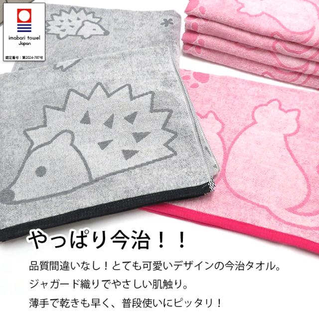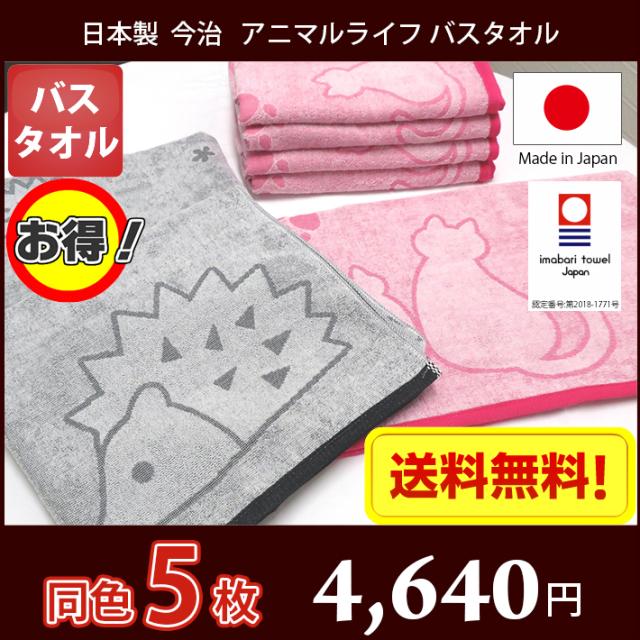 【送料無料】同色5枚セット 日本製 今治タオル アニマルライフ バスタオル 600匁 薄手 / 今治 タオル バス 国産 ネコ ハリネズミ