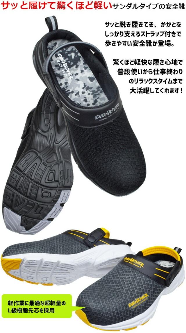 イーブンリバー 安全サンダル 安全靴 セーフティースニーカー ( ストッパー ) スリッポン サンダル ERS07 EVENRIVER メンズ おしゃれ 作業靴