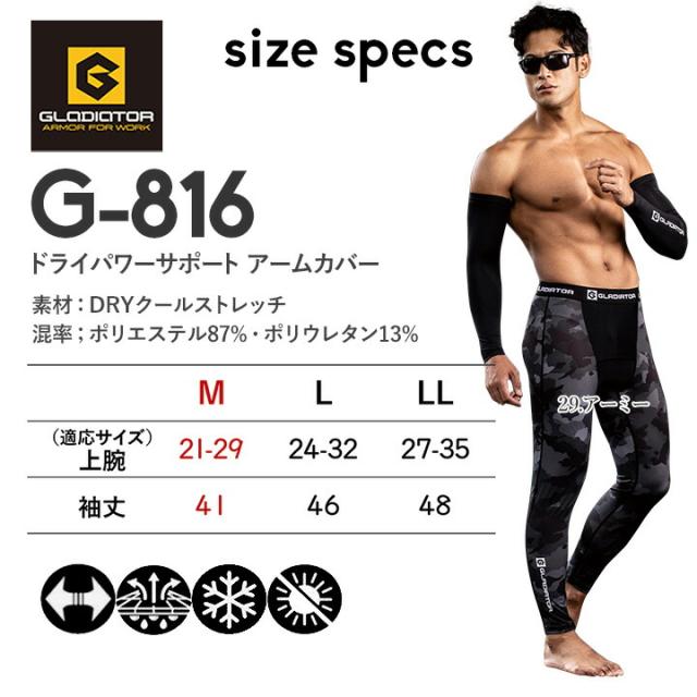 【即日発送】グラディエーター アームカバー 接触冷感 吸汗速乾 UVカット ひんやり ドライパワーサポート G-816 春夏 メンズ レディース スポーツ 作業服 作業着 コーコス CO-COS アウトドア レジャー ウォーキング