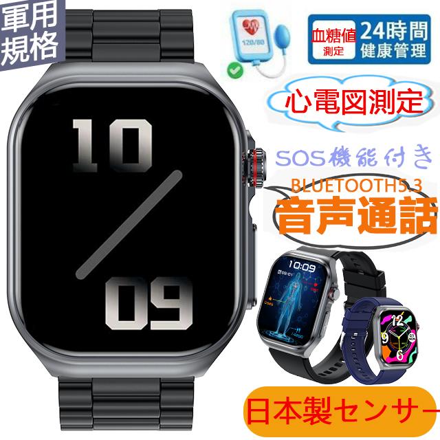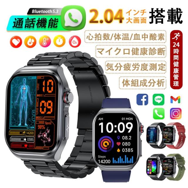 【クーポン券2200円OFF配布中】スマートウォッチ 日本製センサー SOS機能 高精度心拍数 体温 心電図 血圧測定 Bluetooth通話 通知機能 血液成分 血糖値測定 体組成分析 歩数計 血中酸素 睡眠管理 IP68防水 Bluetooth 日本語説明書付 2.04インチ大画面 高齢者 レディース