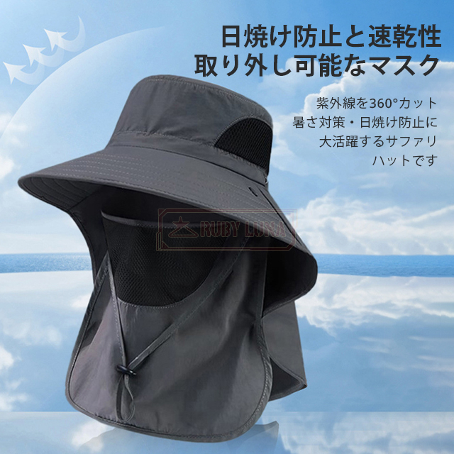 | 特徴 | ◆紫外線を360度カット!暑さ対策・日焼け防止に大活躍するサファリハットです。 ◆つば付きハットに、ネックガード・フェイスマスクもついた、1つで3役の機能性です。 ◆ボタン式で簡単に着脱可能!暑い時は取り外して、日除け時や防寒時は取り付ける。 ◆軽量かつ速乾性に優れた、肌触りの良い生地を採用し、暑さや不快感を防ぎます。 ◆後ろにドローコードを引くことで、サイズも調整可能です。 ◆内蔵の汗止めバンドと調節可能なあご紐が目や顔の汗を取り除きます! 風による吹き飛ばしを防ぎます。 ◆アウトドアシーンはもちろん、フィッシング・庭仕事・ソロキャン・山登りなど、季節を問わず、幅広いシーンで活躍します。 |