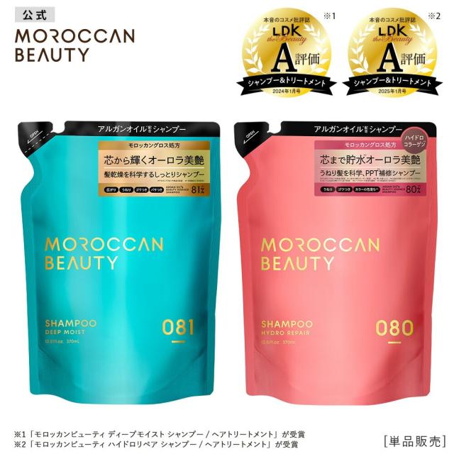 シャンプー トリートメント 詰め替え つめかえ| MOROCCAN BEAUTY モロッカンビューティ ディープモイスト ハイドロリペア|ヘアトリートメント アルガンオイル 艶髪 ダメージ補修 広がり うねり ゴワつき パサつき 370mL / 444mL [単品]