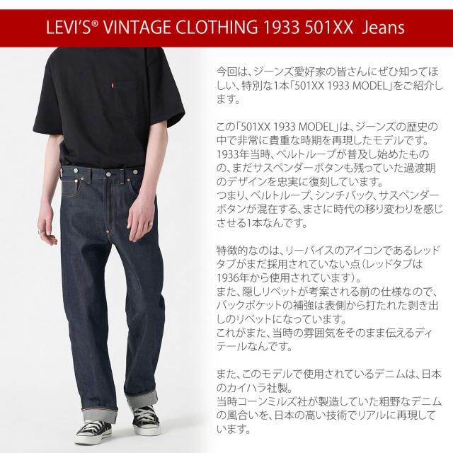 【 501XX 1933復刻モデル 】501XXジーンズ リーバイス ボタンフライ ストレート デニムパンツ 未洗い ノンウォッシュ 日本製 セルビッジデニム LEVIS VINTAGE CLOTHING Levis オーガニック リジッド LVC ( 335010049 ) ビンテージクロージング メンズ アーベン