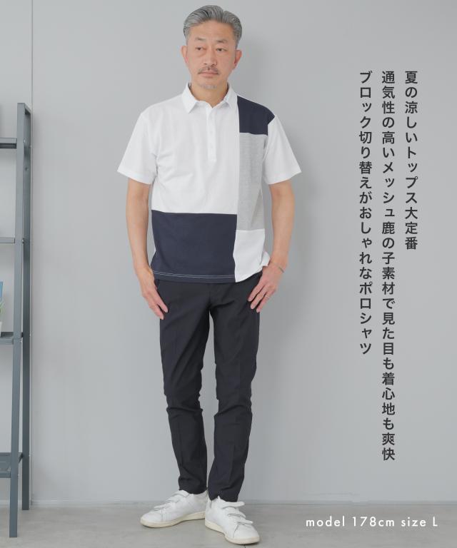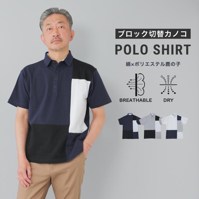 ポロシャツ メンズ 半袖 30代 40代 50代 60代 70代 メンズ おしゃれ ゴルフ 鹿の子 切り替えデザイン ブロック切替 実用的 プレゼント おしゃれ 汗 ラッピング対応 M/L/LL/ ホワイト/ブラック/ネイビー ギフト 送料無料 あす楽 誕生日 還暦 敬老の日