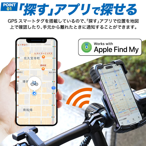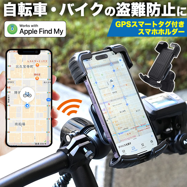 スマホホルダー GPSスマートタグ内蔵型 自転車 バイク 盗難防止 工具不要 簡単取付 360°回転 携帯ホルダー スマホ 携帯 固定器具 バイク キックボード スマホ固定 配達 地図 ナビ スマートフォンホルダー 台車 ホルダーケース GPSナビ用ホルダー ベビーカー