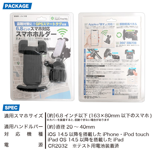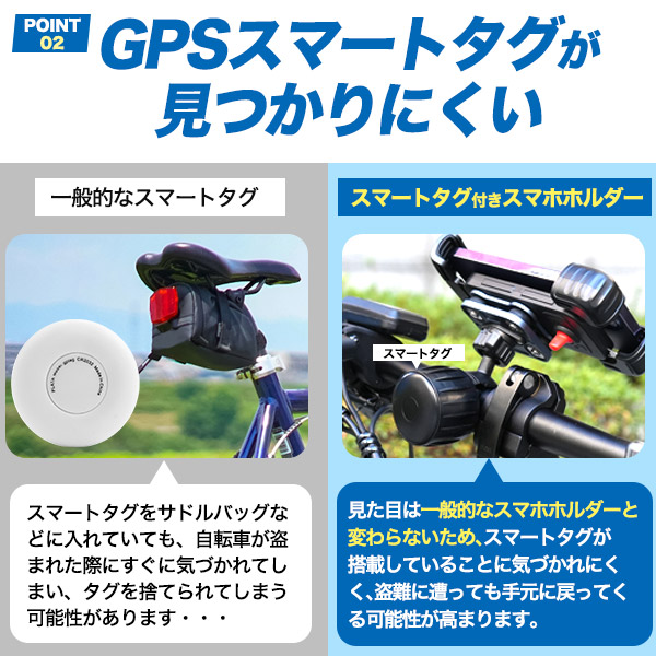 予備電池2個付き GPSスマートタグ内蔵型スマホホルダー!