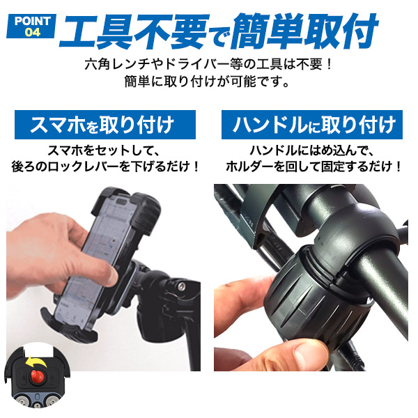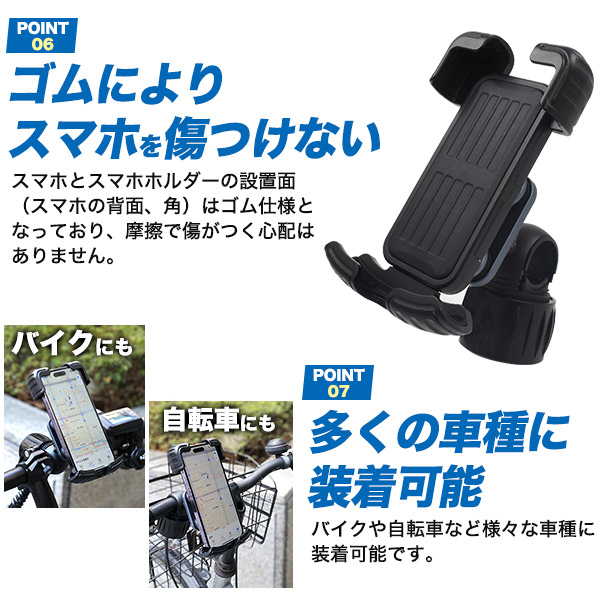 ●走行中にイヤホンを使用することは大変危険ですのでおやめください。●スマートフォンおよび本製品が確実に取付けられていることを確認の上、ご使用ください。●自転車やバイクから離れる際は、必ず装着したスマホをを自転車から取り外してください。盗難の恐れがあります。また、雨天時の放置は浸水の原因となる為おやめください。