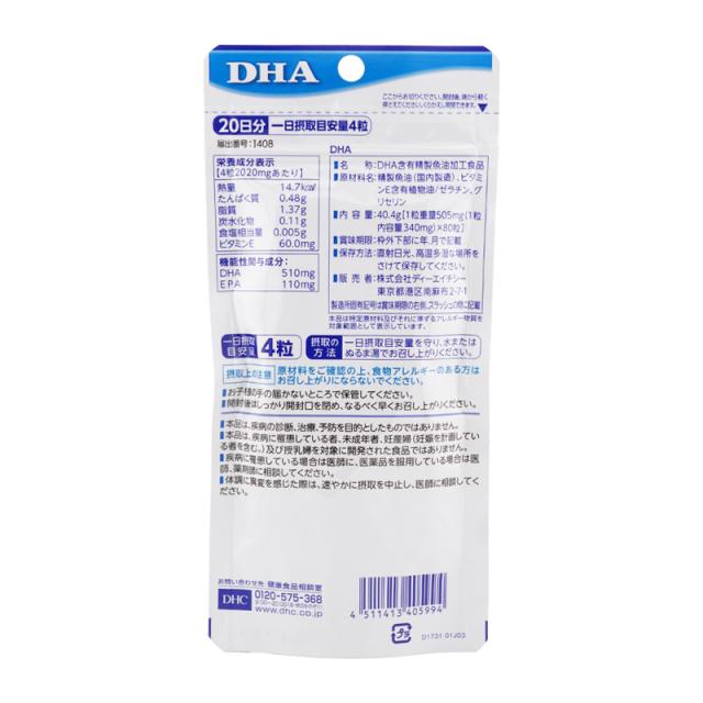 DHC ディーエイチシー DHA 20日分 80粒 機能性表示食品 サプリメント 健康食品 DHA EPA 中性脂肪値 記憶力 中高年 精製魚油 ビタミンE[ギフトラッピング対応]
