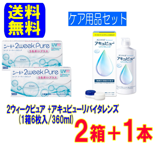 2ウィークピュア うるおいプラス【2箱】+アキュビューリバイタレンズ360ml【1本】送料無料 2週間使い捨て シード コンタクト ケア用品 2week 2ウィーク★