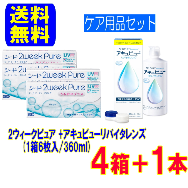 2ウィークピュア うるおいプラス【4箱】+アキュビューリバイタレンズ360ml【1本】送料無料 2週間使い捨て シード コンタクト ケア用品 2week 2ウィーク★