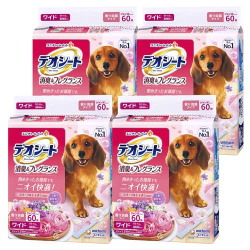 デオシート 消臭&フレグランス フローラルシャボンの香り ワイド 犬用(60枚×4個)[ペットシーツ・犬のトイレ用品]