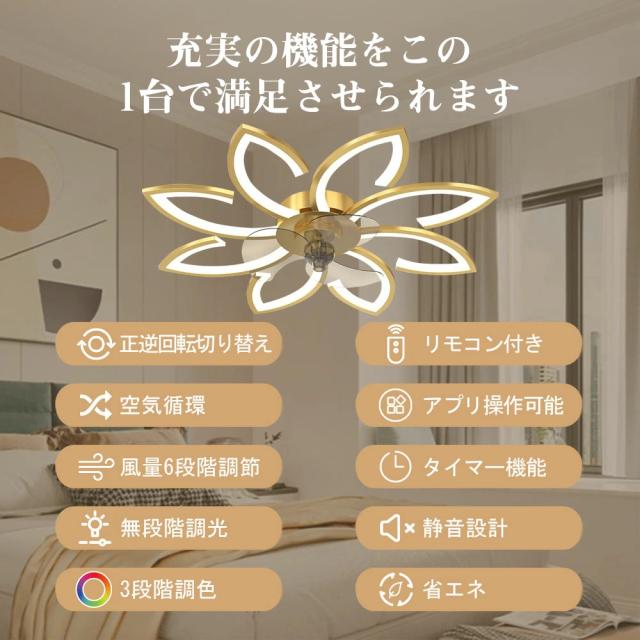 シーリングファンライト led シーリングファン ファン付き照明 花形 シーリングライト おしゃれ 6畳 8畳 9畳 調光調色 節電 逆回転機能 DCモーター 風量調節 照明器具 天井照明 リビング 寝室 和室 軽量 間接照明 子供部屋 静音 空気循環 新生活 一人暮らし