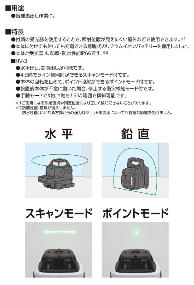 スピニングレーザー HG HV-3 グリーン 受光器付 70849 DIY 工具 計測工具 レーザー レーザー墨出し器 スピニングレーザー 受光器付き 防塵 防水 水平出し 鉛直出し シンワ測定