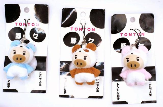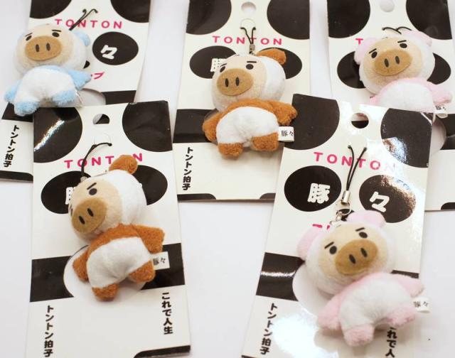 大きさ:ブタの本体=縦横約7cm×5cm、紐を含む全長=約12cm