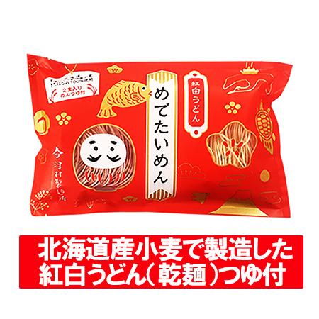 紅白 うどん 送料無料 うどん 乾麺 北海道産小麦 きたほなみ 使用 北海道 紅白うどん めでたいめん 1袋 (2食入) めんつゆ 付き 麺類 うどん