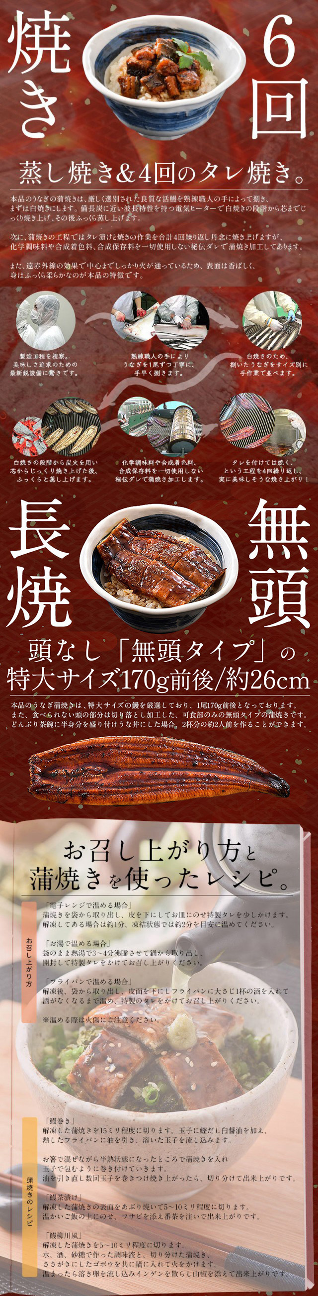 うなぎ蒲焼170g前後×3尾、タレ&山椒(タレ10g、山椒末0.2g)×3袋