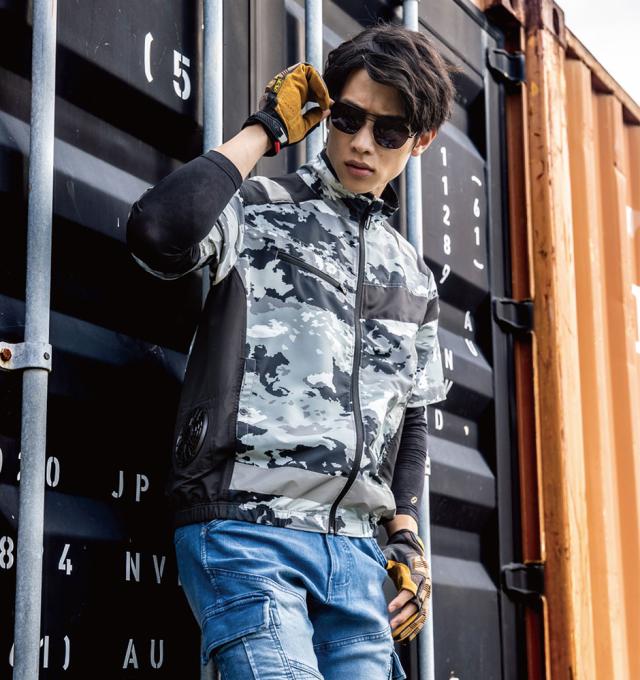 現在空調服(R)という用語が世間で使用されておりますが、本来「空調服(R)」とは株式会社空調服が夏場の衣服内気候環境を改善することを目的として発売している「電動ファン内蔵上着」の商品名ですので、こちらの商品は「空調服(R)」ではなく、同じような効果を目的として株式会社空調服以外のメーカーより発売されているEFウェア(電動ファン付きウェア)シリーズでございます。