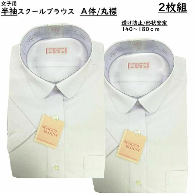 【 2枚組 】スクールブラウス 半袖 丸襟 A体 女子 ホワイト 白 形態安定加工 返品不可 中学生 高校生 ティーンズ ファッション 半袖シャツ スクール Yシャツ