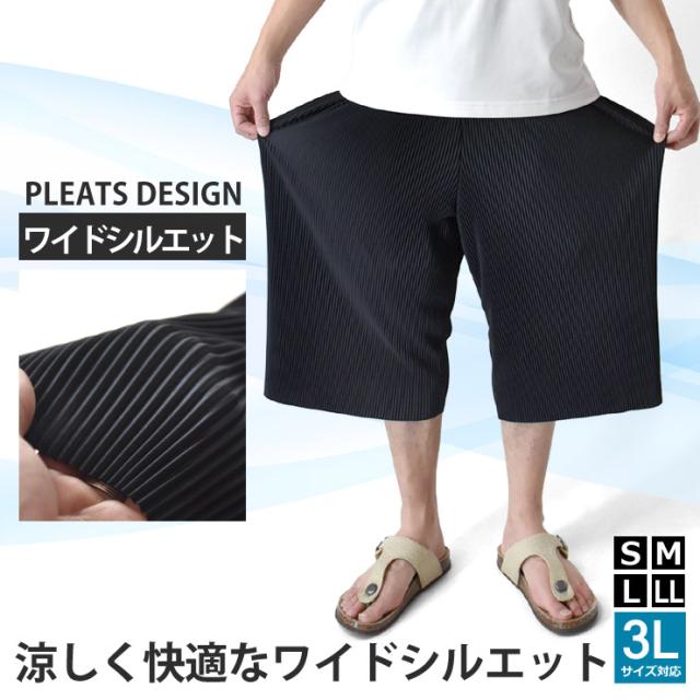 7分丈 ワイド プリーツ ハーフパンツ ステテコ【C4Q】