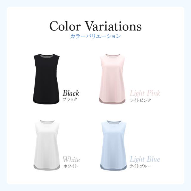 シンプルながらも計算されたノースリーブデザインは、肩周りをすっきり見せ、どんなボトムスにも合わせやすい◎