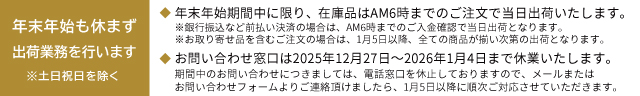 ※一部地域・離島につきましては、表示のお届け予定日期間内にお届けできない場合があります。ロットナンバー